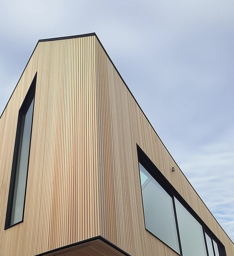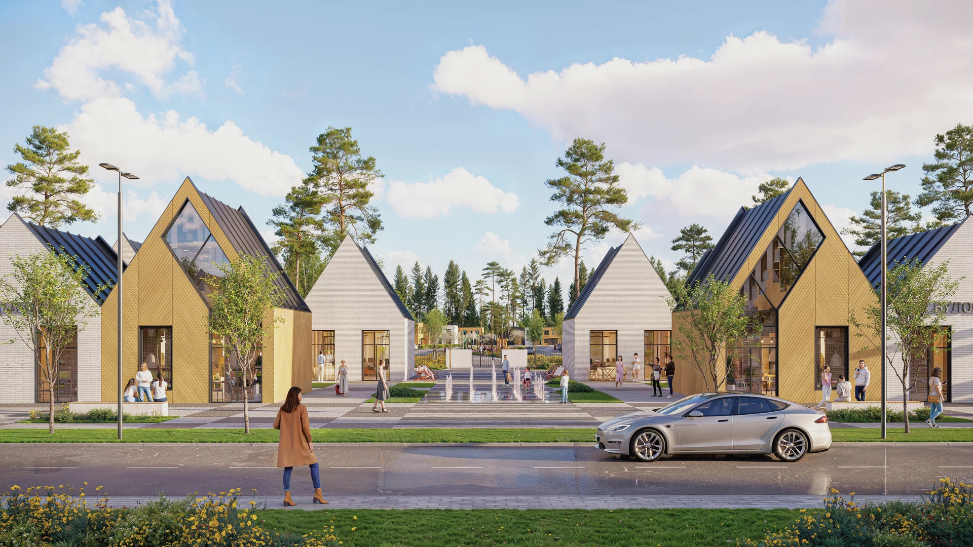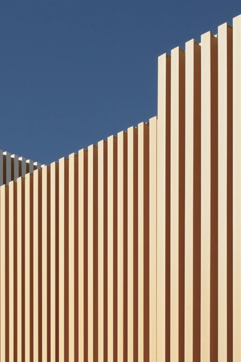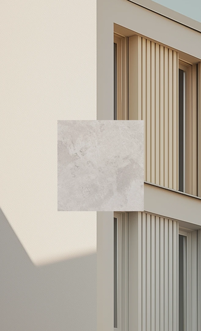 Поверхность наружного слоя имитирует текстуру и цвет природных материалов: деревянных реек и досок коричнево-бежевого и серо-коричневого оттенков, а также кирпича сигнального белого и графитового серого цветов. В палитру фасадов коммерческих помещений также будет добавлен травяной зеленый и базальтово-серый.