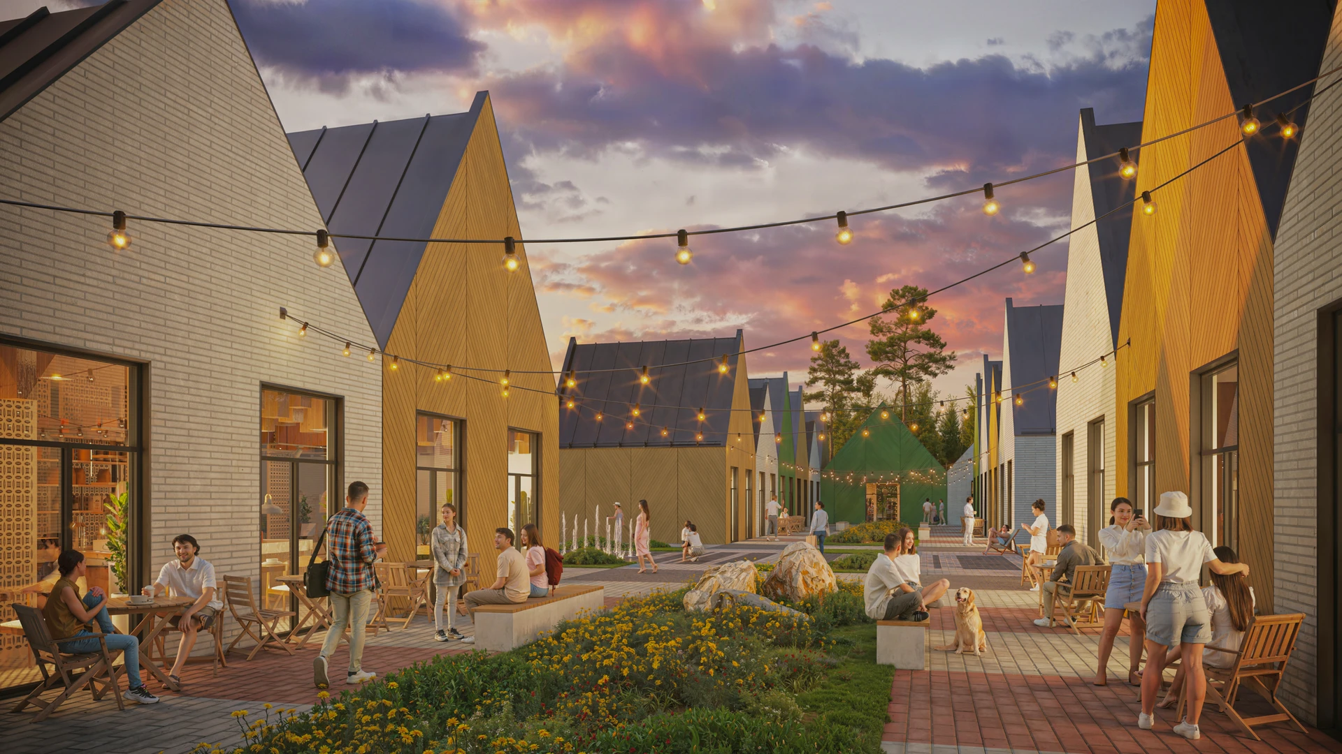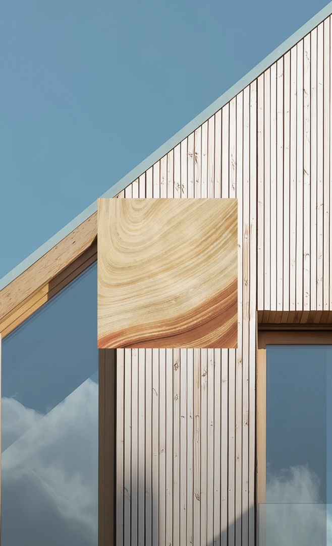 Поверхность наружного слоя имитирует текстуру и цвет природных материалов: деревянных реек и досок коричнево-бежевого и серо-коричневого оттенков, а также кирпича сигнального белого и графитового серого цветов. В палитру фасадов коммерческих помещений также будет добавлен травяной зеленый и базальтово-серый.